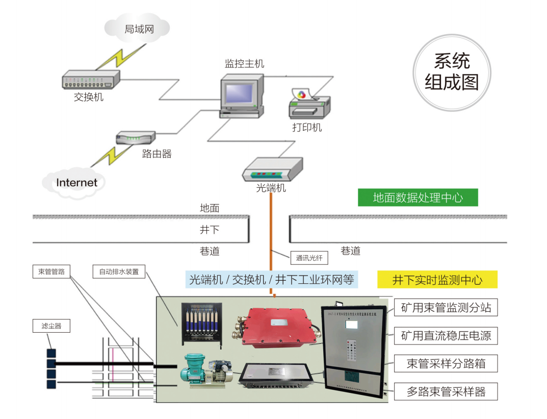 全激光主机将分析的结果通过环网或光纤传到地面监测站,并通过分析预警软件对一段时间内的分析结果分析预警,同时能与智能化矿山平台融合实现对火灾参数的智能监测、分析、预测预警及联动控制。