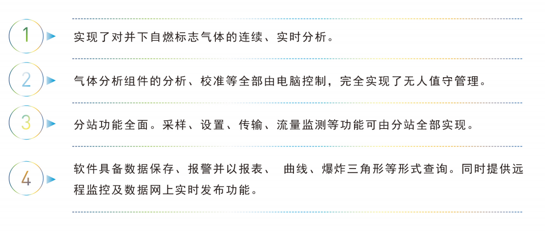 全激光主机通过少量束管采样对井下取样点气体的一氧化碳、二氧化碳、甲烷、氧气、乙烯、乙快、乙烷、氨气、氮气(计算值) 气体成分含量实现24小时连续循环及实时分析。