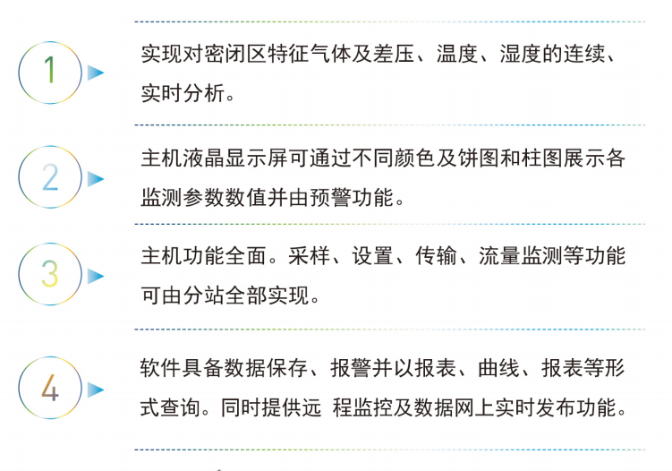 井下监测主机也可向地面监测中心站传输实时数据及分析结果,同时可以利用地面中心站计算机强大的计算功能,实现对监测数据的图表分析、图形显示、报警提示、打印报表、数据长时间存储等功能,从而尽可能避免因抽气管路过长带来的监测分析误差,提高了监测的实时性和准确性。